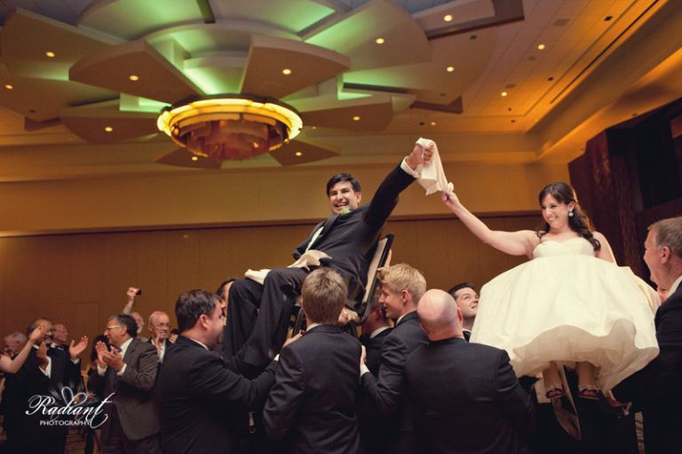 …the couple lifted up in chairs over the dance floor as they danced the horah…