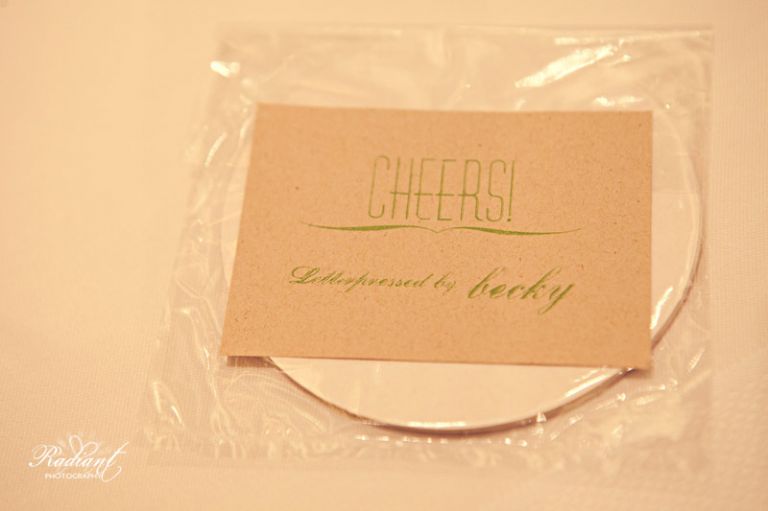 Becky does letterpress so she handmade all kinds of little pretties that could be seen lying around the place. Throughout the whole wedding, paper replaced a variety of features including centerpiece flowers, guest favors (coasters), and even the contents of the flower girls baskets as they threw paper instead of petals!