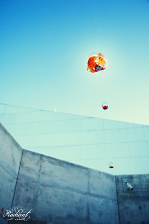 …made this wedding not only unique, but also very stunning! One of my favorite details were the little balls with fall leaves and candles inside that looked like they were hanging down from the sky… SO cool!