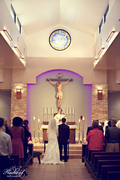 Click to see the rest of the photos from Maureen and Matt’s cute, classy, clever, Catholic wedding.