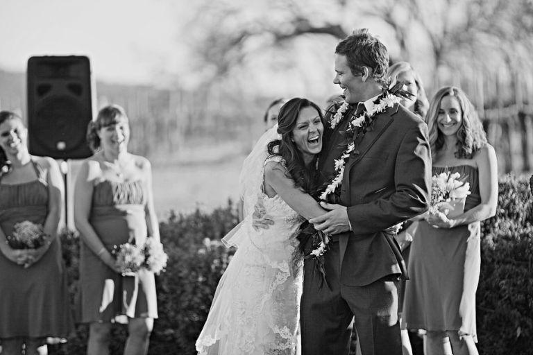 It was said that this photo was a perfect capture of Ashley and JT’s personality. See more photos from Ashley and JT’s gorgeous vineyard wedding.