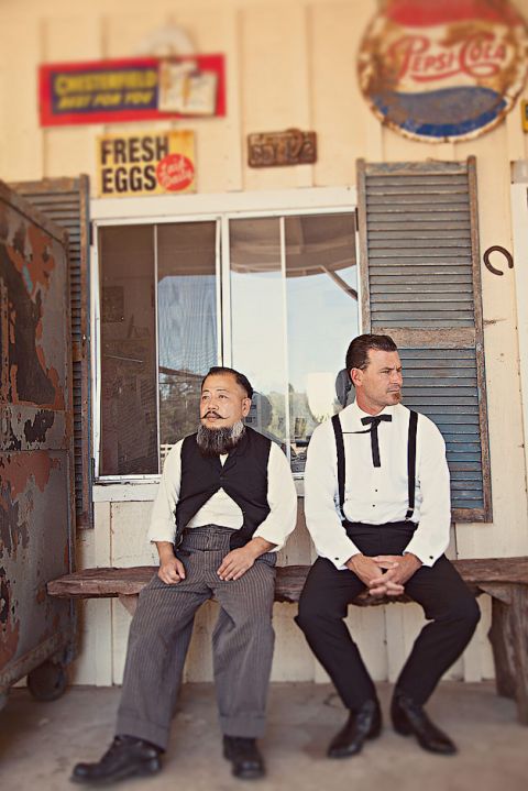 Chillin’ out, maxin’, relaxin’ all cool. See more from Fawn and John’s vintage charm wedding.